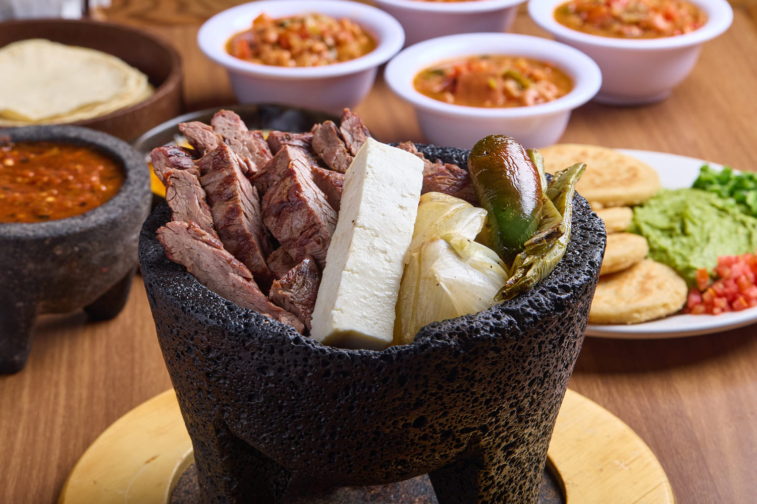 *Nuestros molcajetes se acompañana con cebolla asada, nopal asado, chile toreado, tira de queso panela y frijoles charros.